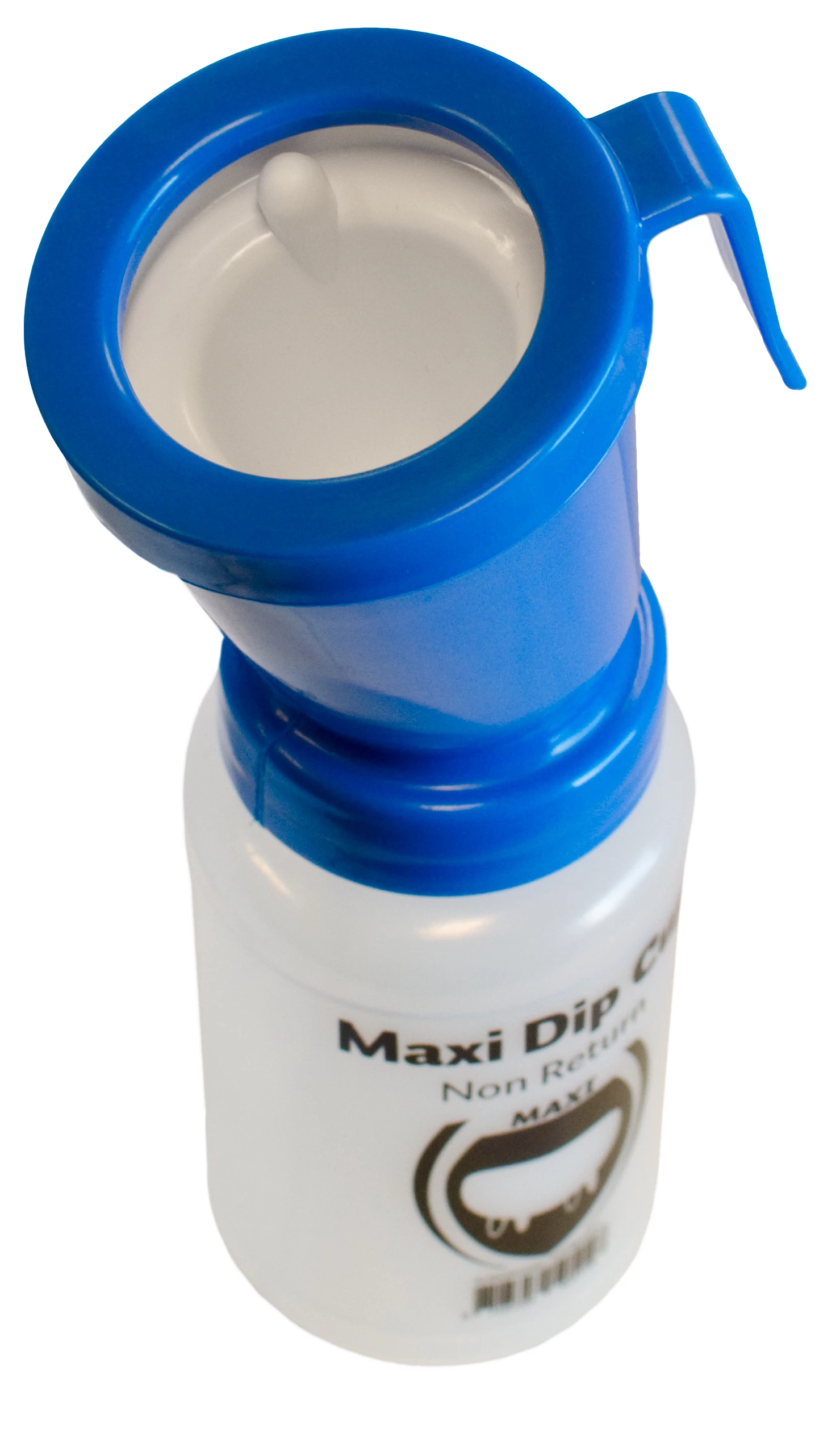 Dipbeker waar het dipmiddel niet terug in de beker kan.