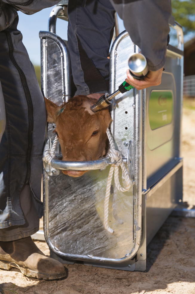 Ondersteunt bij het veilig en zorgvuldig onthoornen van kalveren