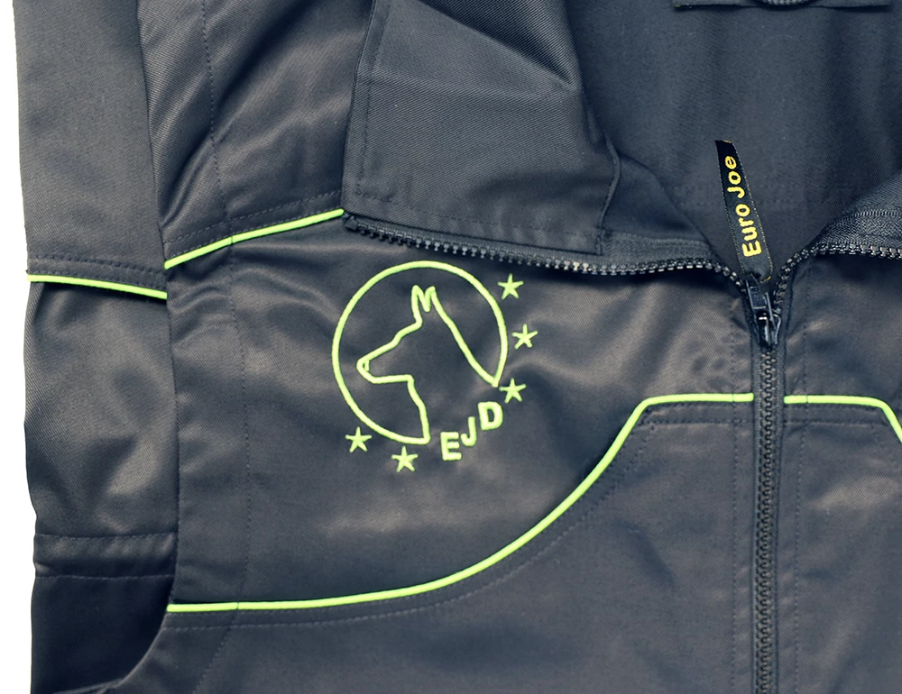 The training vest “Rex” is a jacket with many pockets. There are pockets in the front, in the back and on the chest. Behind the zipper of the chest pocket, there is another pocket where you can put away your mobile and etc… This vest also has two feeding bags that can be washed separately. The fabric is water-and dirt-repellent and is very fresh and modern with blue accents. The back is kept free for any potentially personalised embroidery.