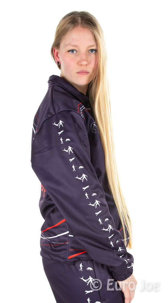 The training vest has 2 side pockets with zipper (handy!), an elastic cord is integrated at the bottom of the vest that can be adjusted in length to suit your taste. This way you can make the cardigan blush or just hang it.