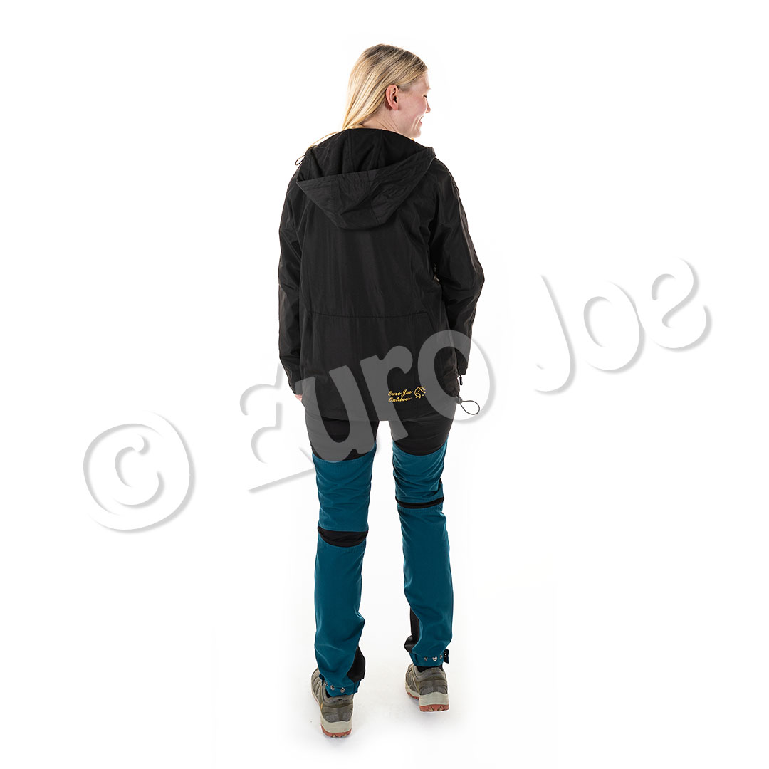 The hood is spacious and equipped with an elastic band with which the hood can be pulled up as you like. There is also the option at the bottom of the jacket to make the jacket more tense, and even wear it as a blouson or jacket.