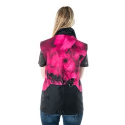 The vest is fully lined with a fleece lining, also in the hood. The sleeves are lined with a smooth fabric that won’t make it easy to slip in and out of the sleeves with another sweater.