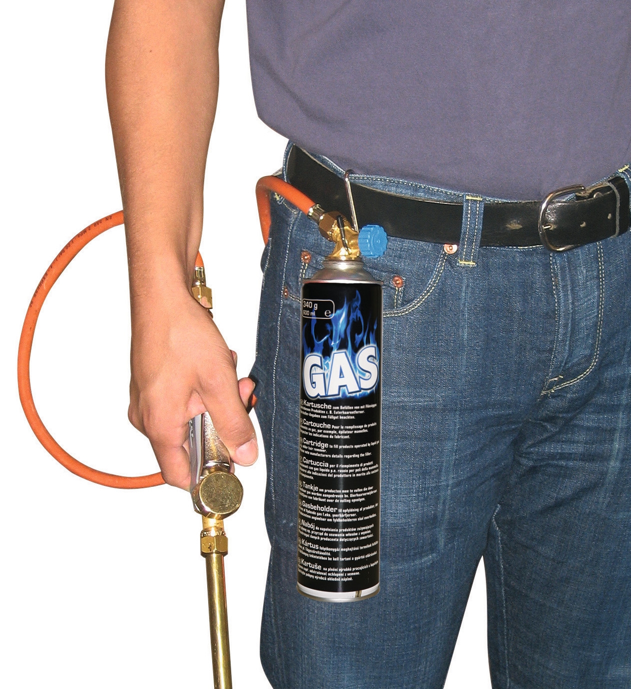 Geen gesleep meer met allerlei grote gasflessen, maar simpel met een klein gasbusje (600 ml) die u met een unieke ophanghaak aan de broekriem kunt hangen.