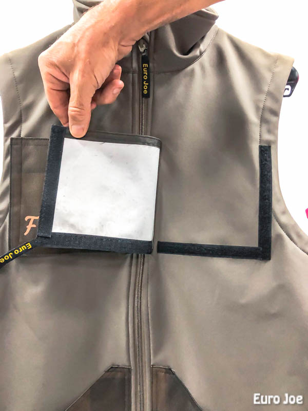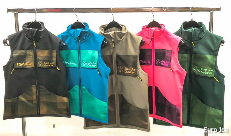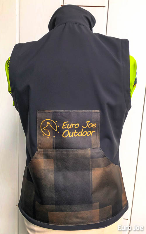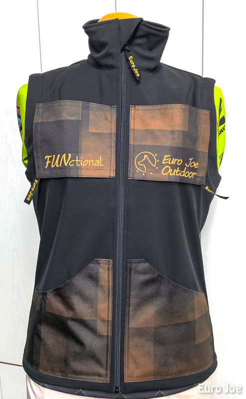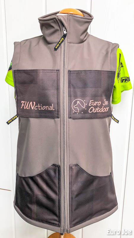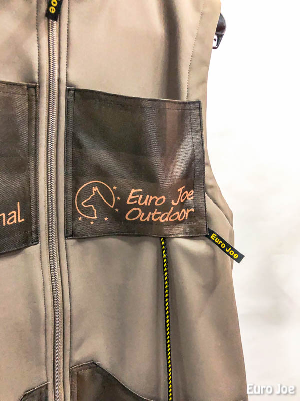 This vest is made of softshell, which has a nice warm inside. The softshell is water resistant to 10000 H²O and weighs 320 gr / m².